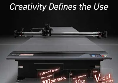The high-end “CFX Series” flatbed cutting plotter offers the highest speed and acceleration in its class, while up to four types of tools can be mounted simultaneously, greatly improving processing efficiency.